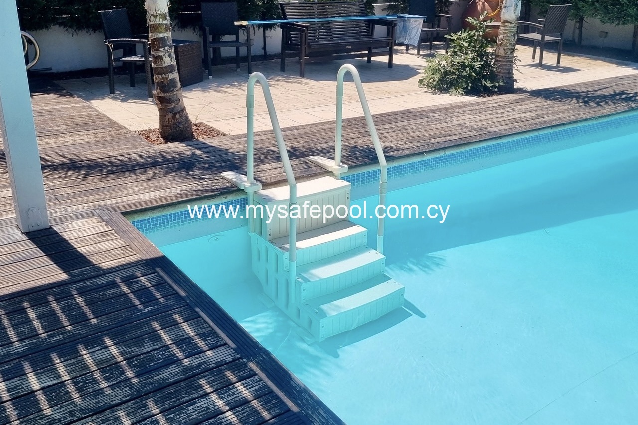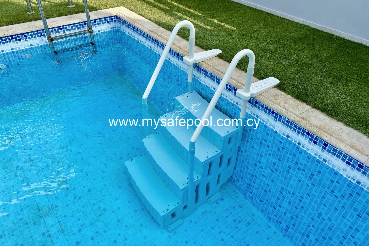 Поэтому мы рады представить Вам наши Ступени легкого доступа к бассейну, — более практичное и менее затратное решение, чем бетонные ступени. Эти белые пластиковые ступени поставляются в виде комплекта для самостоятельной сборки и обеспечивают удобство входа в/выхода из бассейна для людей с проблемами мобильности или инвалидностью.