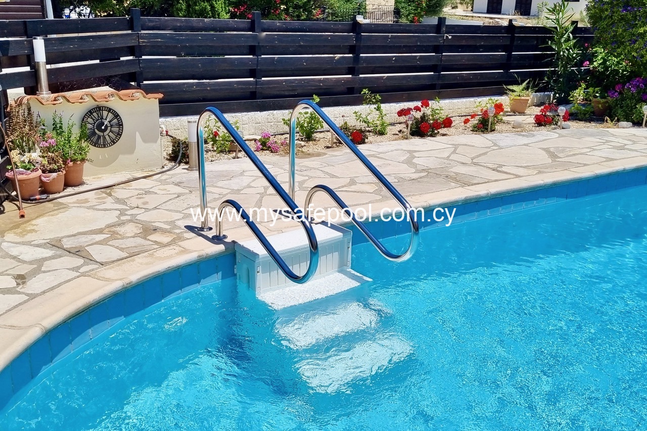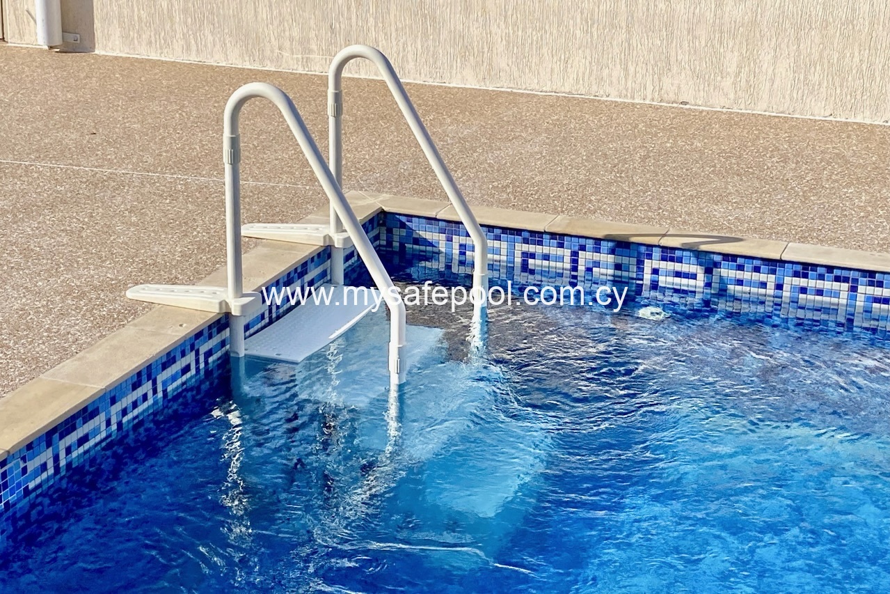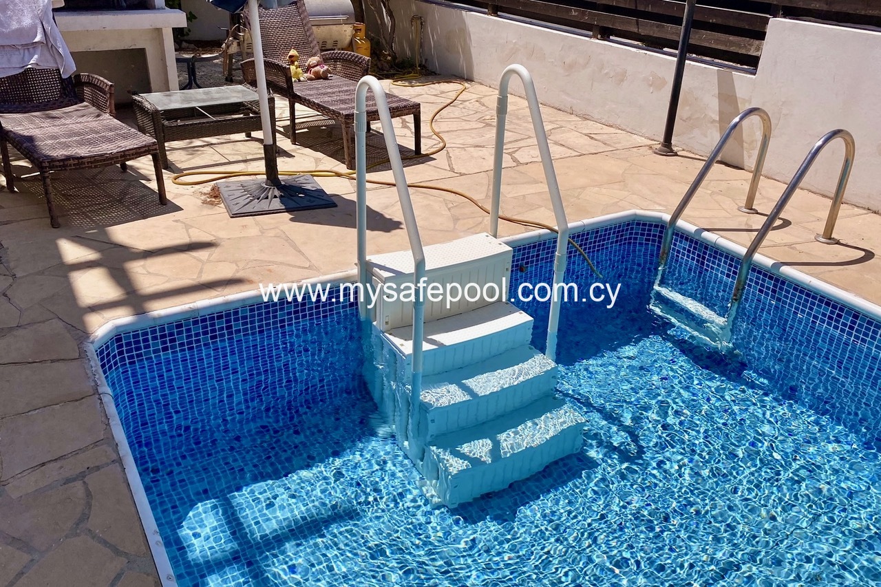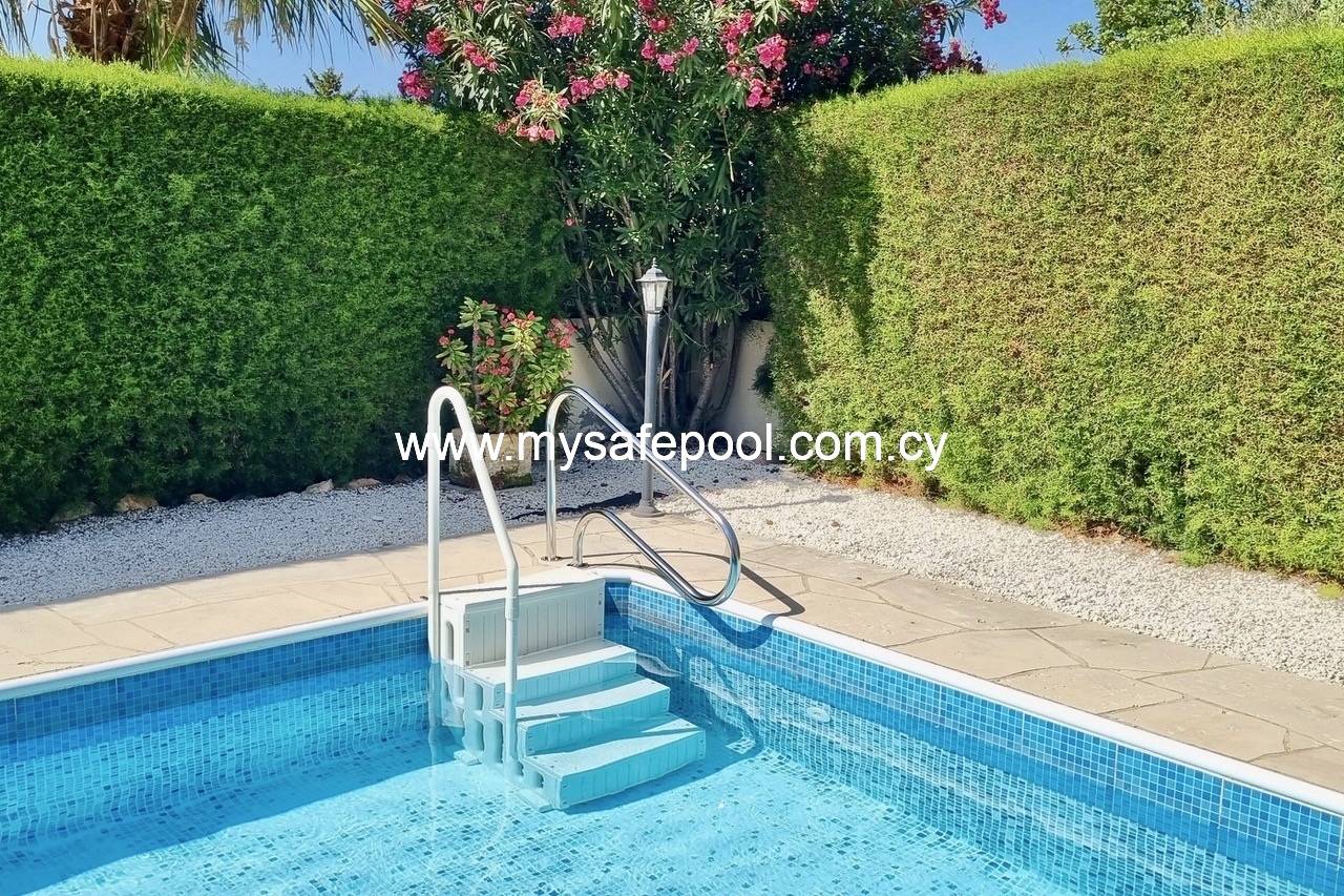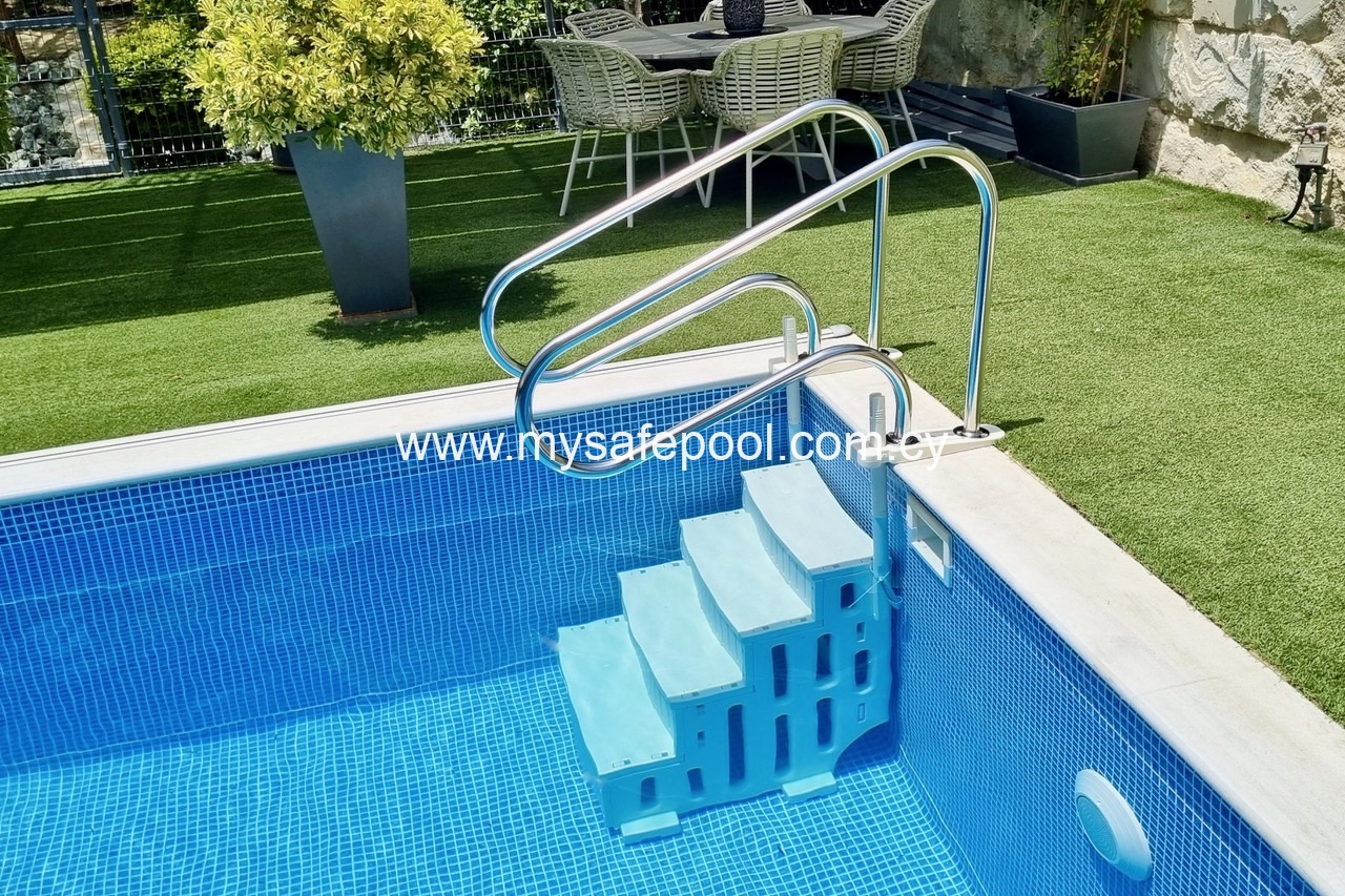 Marina suffered from multiple hip dislocations and lost a lot of leg power making impossible climbing a normal pool ladder. Safe.T.First found the best possible solution within multiple first quality products: four steps to top level of the pool with strong stainless grab rails. In addition, Alan the technician, made a perfect and clean installation using the precision of a watchmaker. We are very thankful to Safe.T.Pool and can strongly recommend the company as a competent and faithful partner.