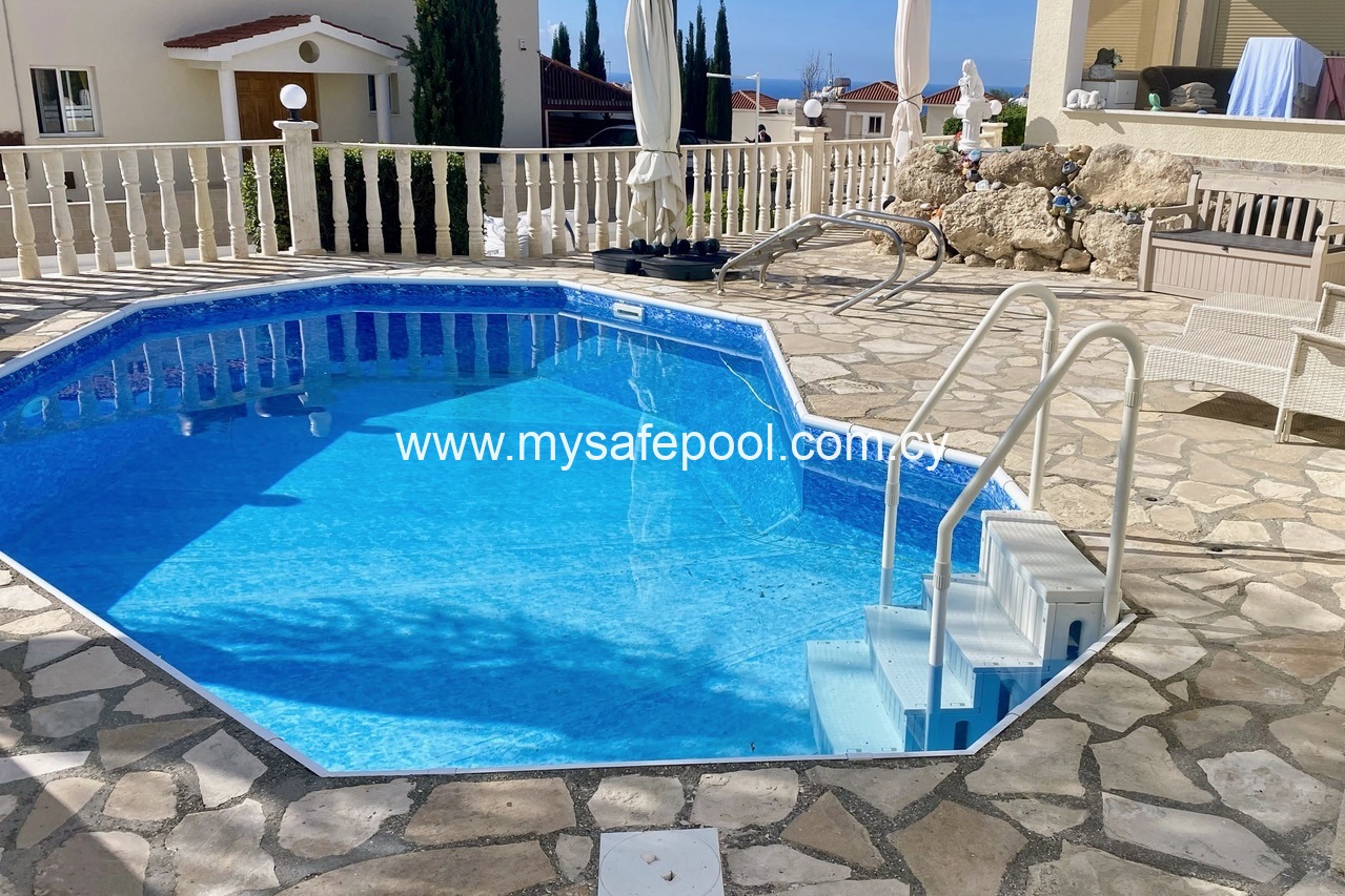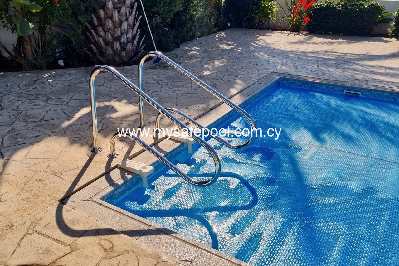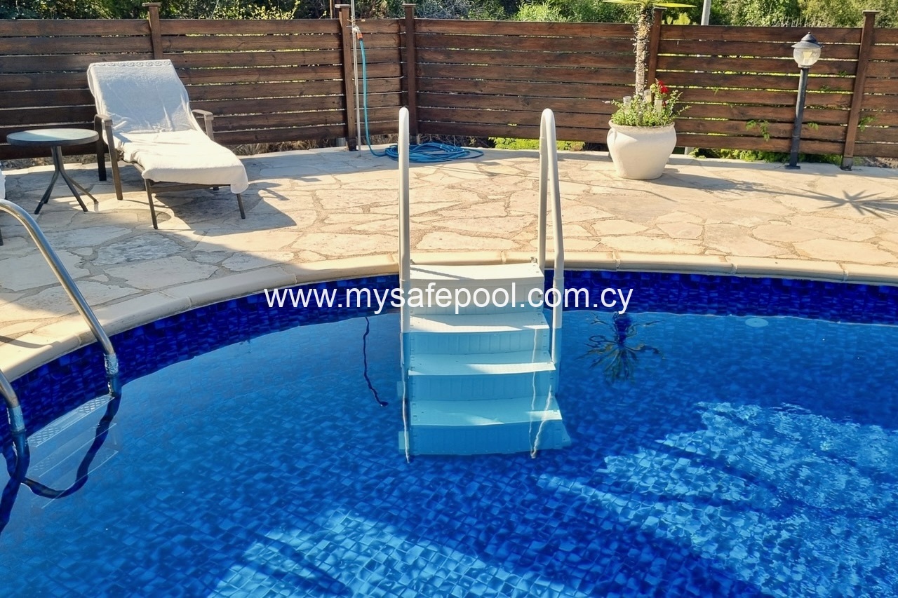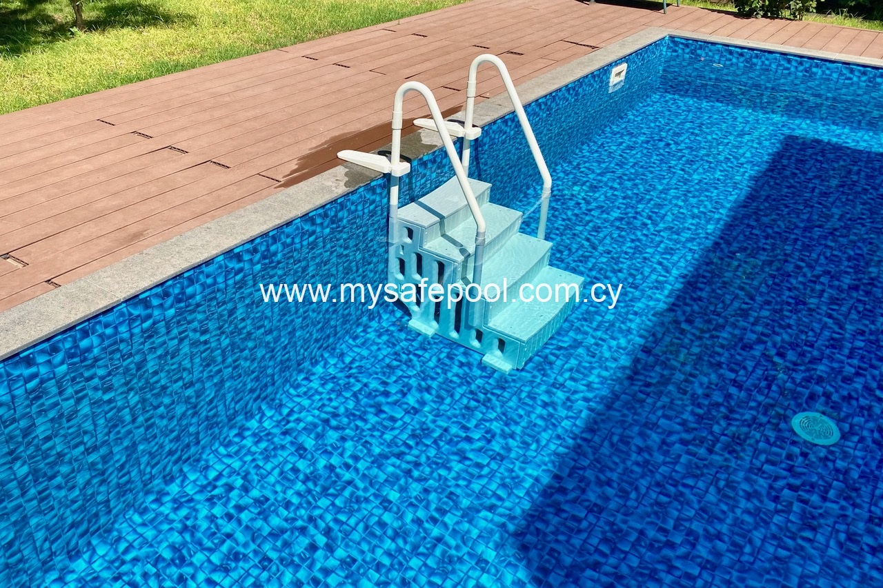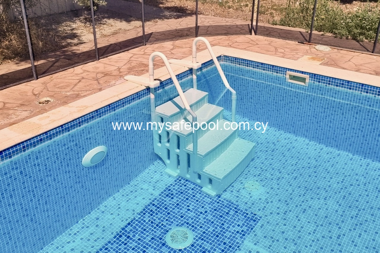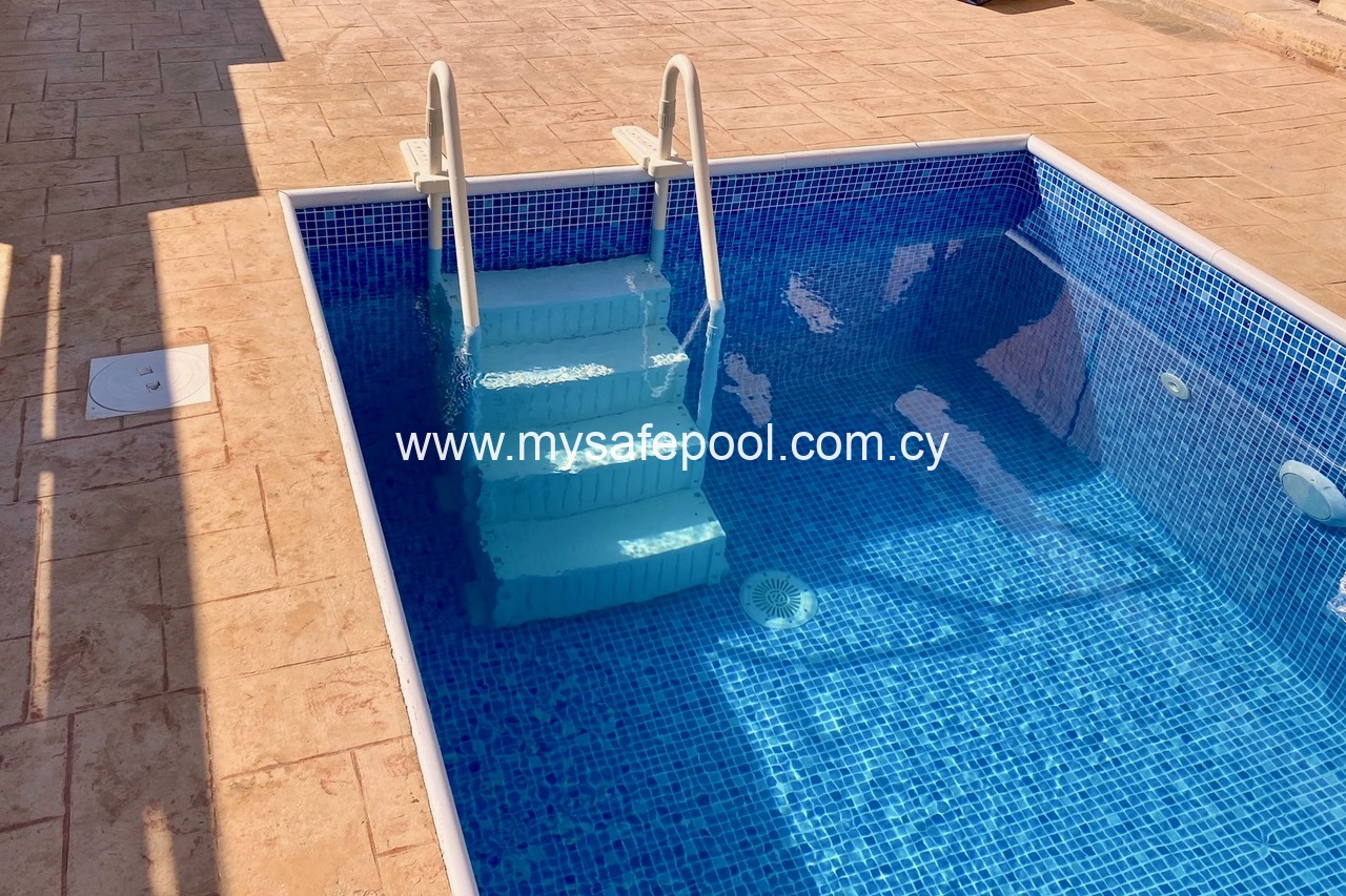 Marina suffered from multiple hip dislocations and lost a lot of leg power making impossible climbing a normal pool ladder. Safe.T.First found the best possible solution within multiple first quality products: four steps to top level of the pool with strong stainless grab rails. In addition, Alan the technician, made a perfect and clean installation using the precision of a watchmaker. We are very thankful to Safe.T.Pool and can strongly recommend the company as a competent and faithful partner.