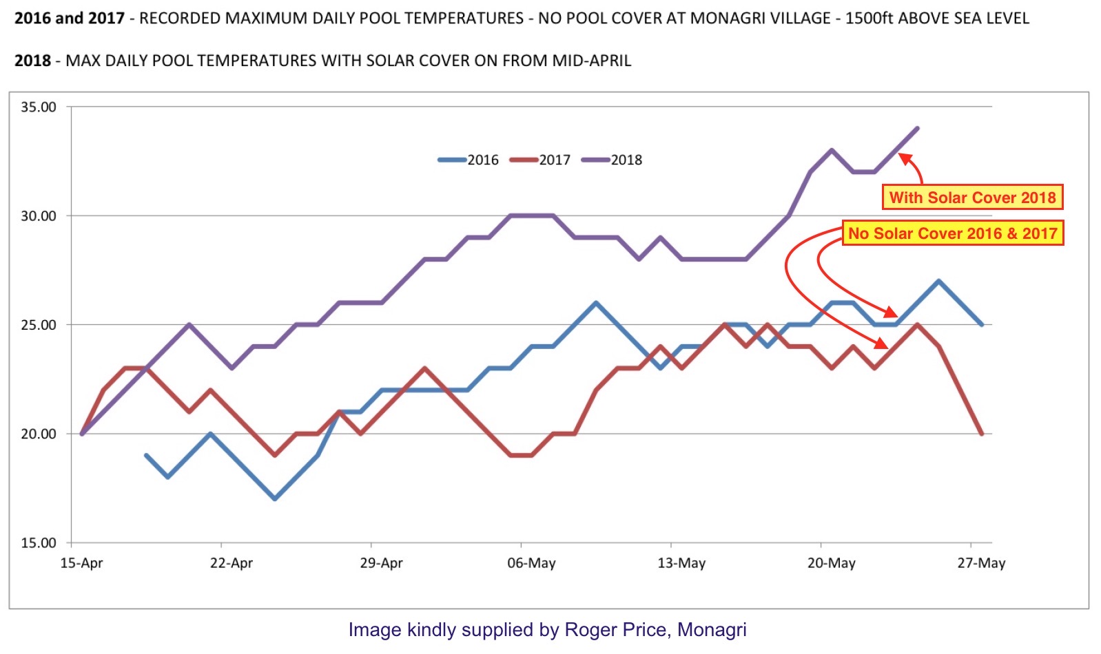 Когда вы устанавливали покрывало в четверг, температура воды была 25ºC. К субботе было 32ºC. А в воскресенье 34-35ºС. Действительно идеально!! Совершенно потрясающе!!!