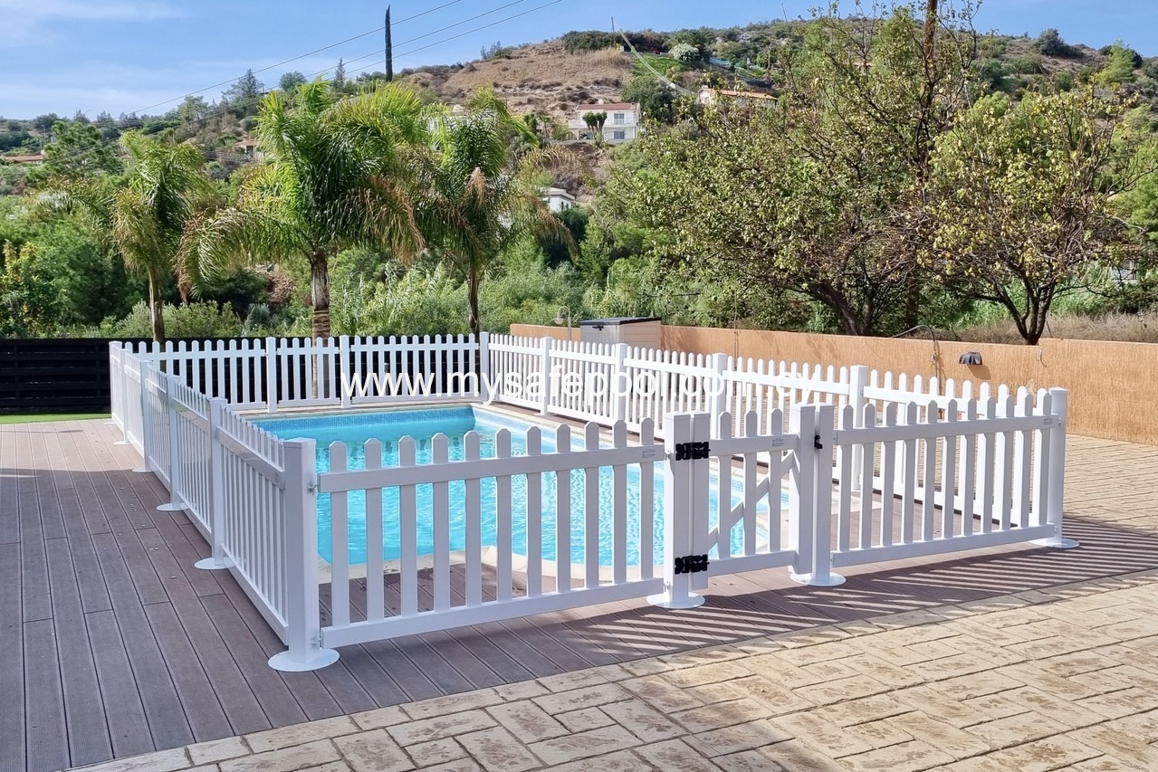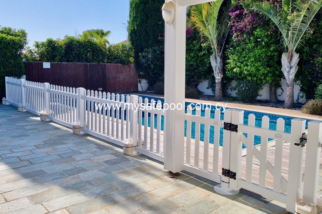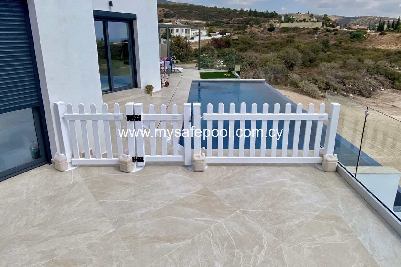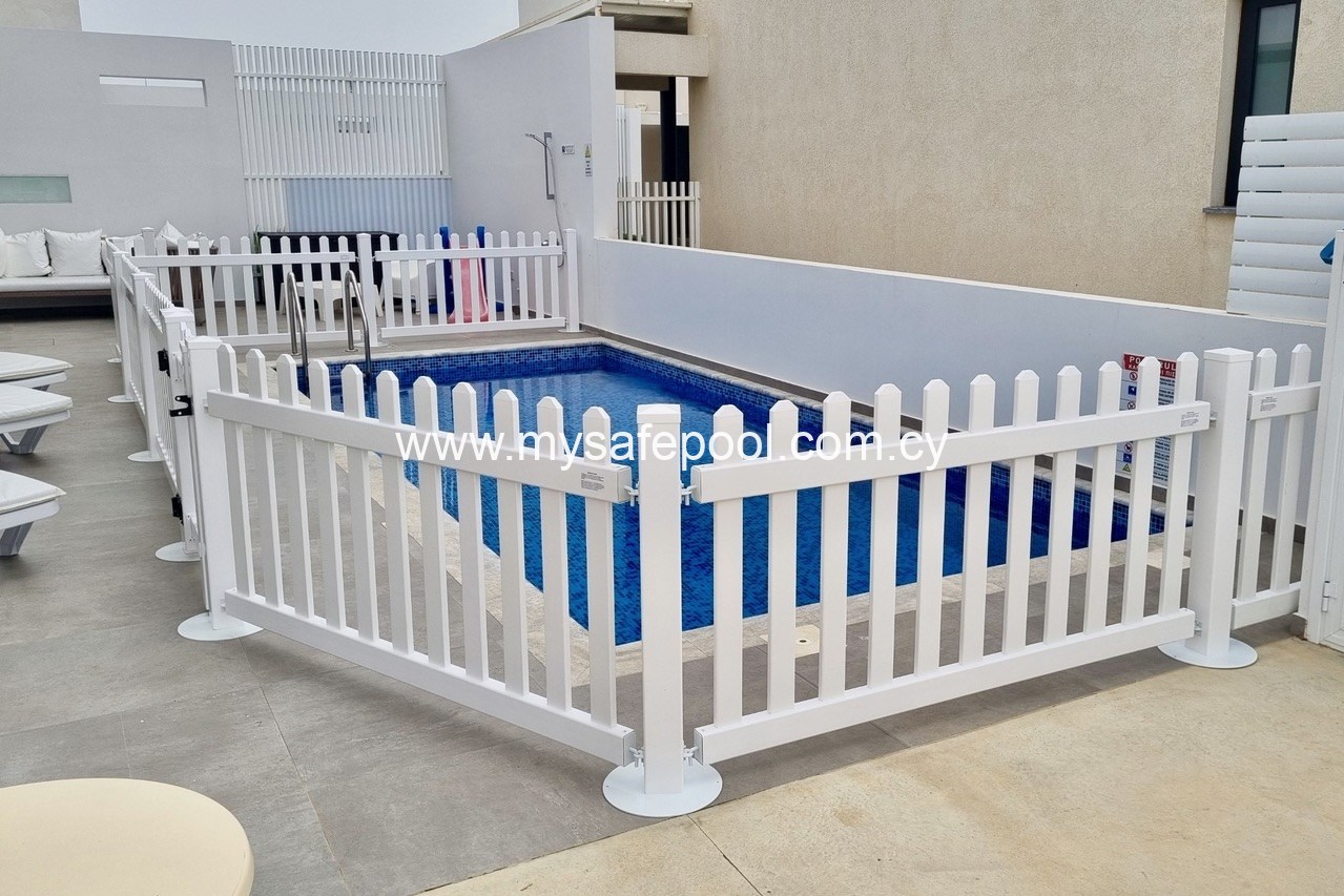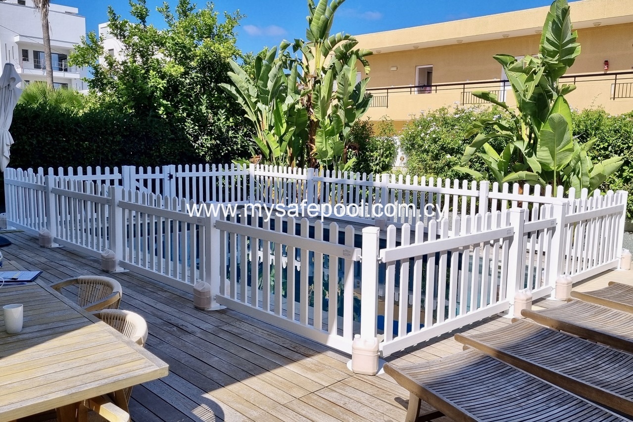 Ограждение с Нулевыми Отверстиями Зорба – это съемное, безопорное ограждение в виде штакетника модульной конструкции, в которое можно вставить калитку. Ограждение Зорба прикрепляется к фланцевым стойкам с тяжелыми круглыми основаниями, и поэтому его можно установить, не сверля отверстия в площадке у бассейна. Это делает его подходящим для: