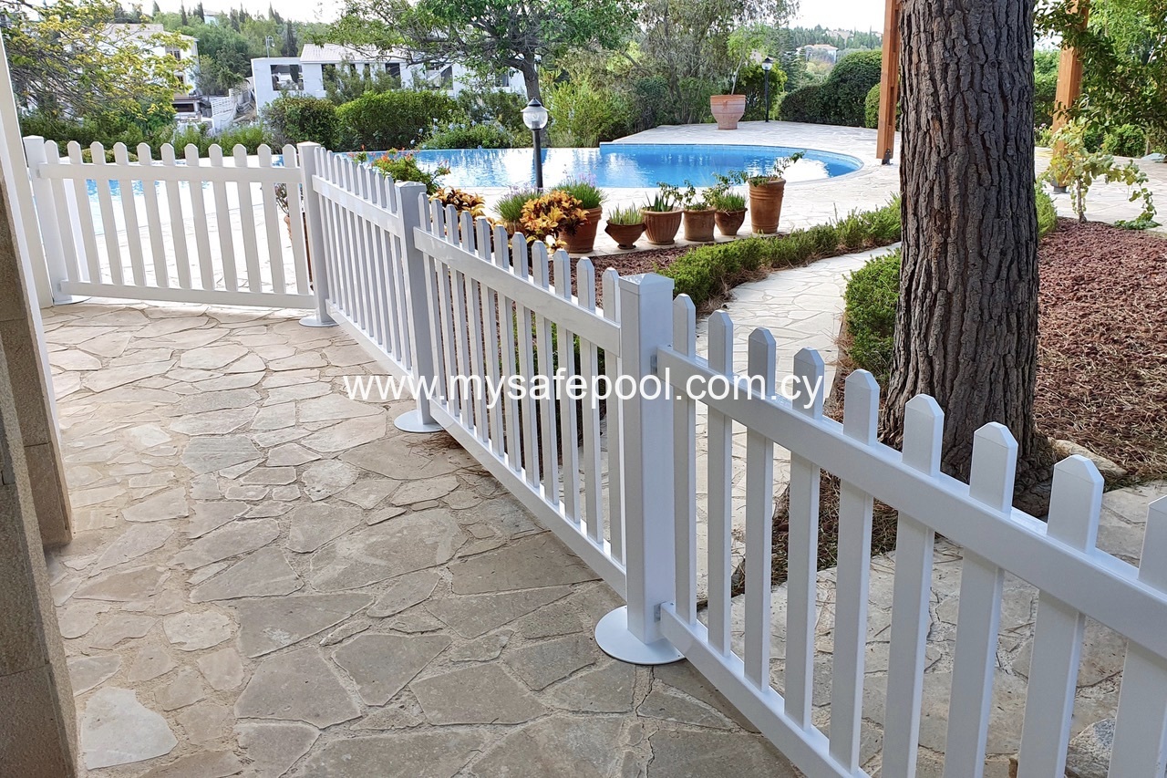 Ограждение с Нулевыми Отверстиями Зорба – это съемное, безопорное ограждение в виде штакетника модульной конструкции, в которое можно вставить калитку. Ограждение Зорба прикрепляется к фланцевым стойкам с тяжелыми круглыми основаниями, и поэтому его можно установить, не сверля отверстия в площадке у бассейна. Это делает его подходящим для: