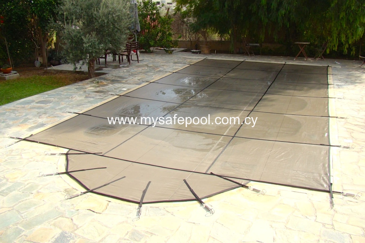 Winter covers have traditionally been made from solid PVC membrane. A drawback to this type of cover is that water accumulates on top of the cover whenever it rains, posing a safety hazard to young children.